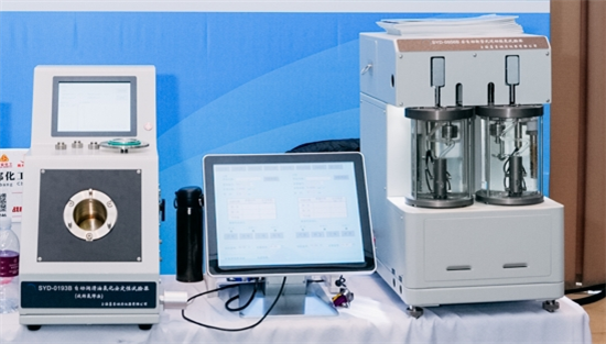 我们展示的全自动折管式运动粘度试验器、自动润滑油氧化安定性试验器(旋转氧弹法)、全自动倾点浊点测定仪。