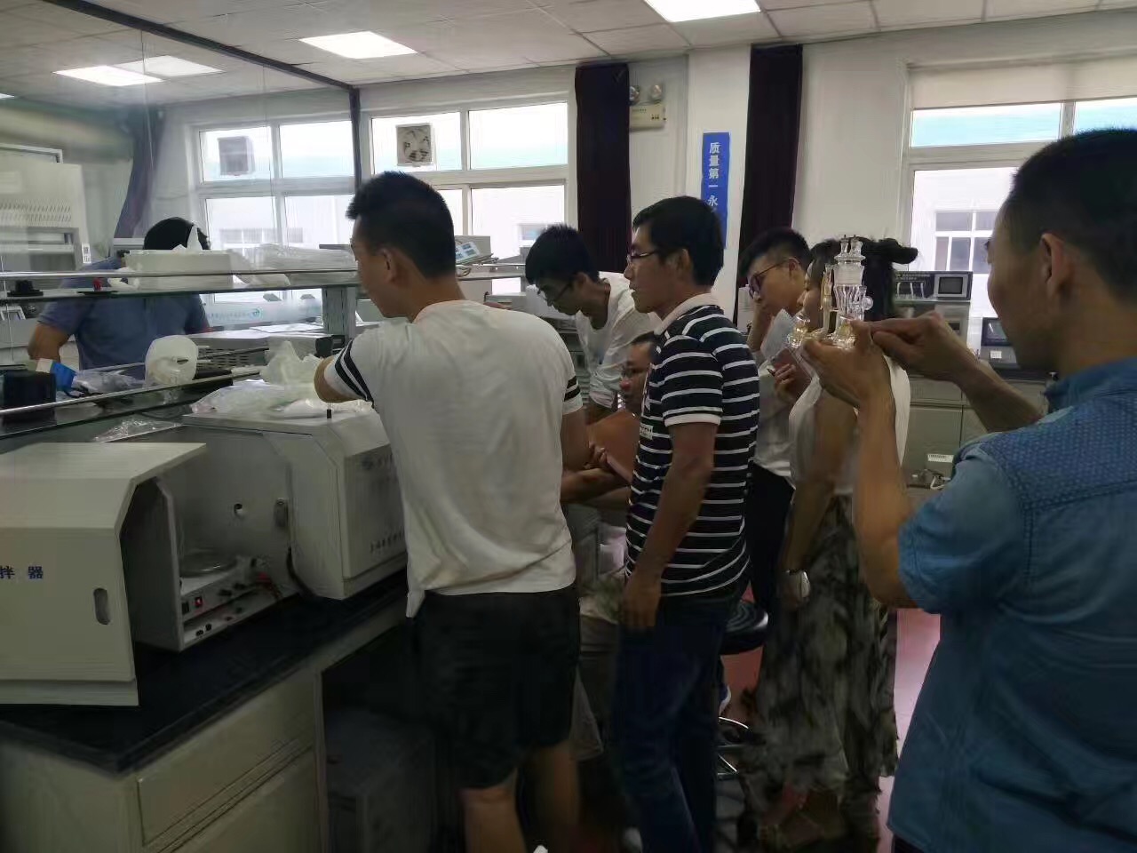 在操作使用培训中,每位外勤认真学习了仪器的结构和操作使用。了解公司最近的电化学仪器以及公路沥青混合料的仪器。