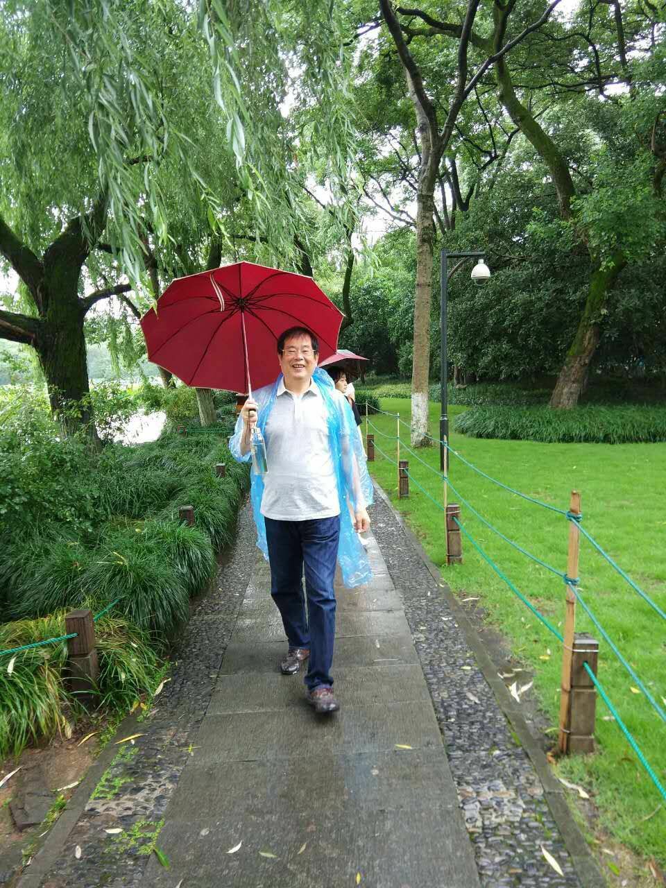 万绿从众一点红,为雨中的西湖添加了一抹亮色。