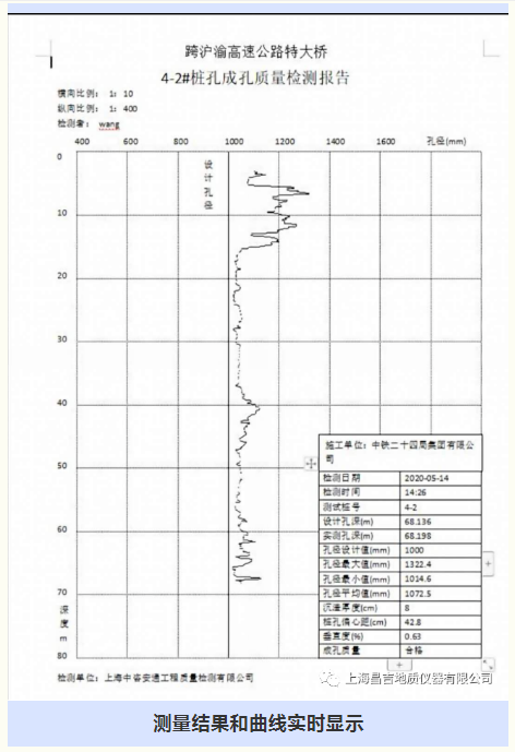 实时显示处理各项检测数据和曲线,快速绘制成孔质量报告。